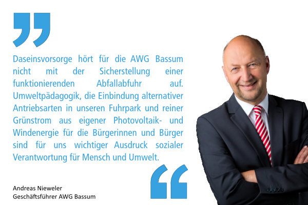 Heute ist Tag der Daseinsvorsorge. Jährlich am 23. Juni zeigen kommunale Unternehmen an diesem Tag deutschlandweit ihre Leistungen der Daseinsvorsorge – von Energie- und Wasserversorgung, über Abwasser- und Abfallentsorgung bis hin zum Ausbau von Glasfaser. Auch die AWG Bassum beteiligt sich.